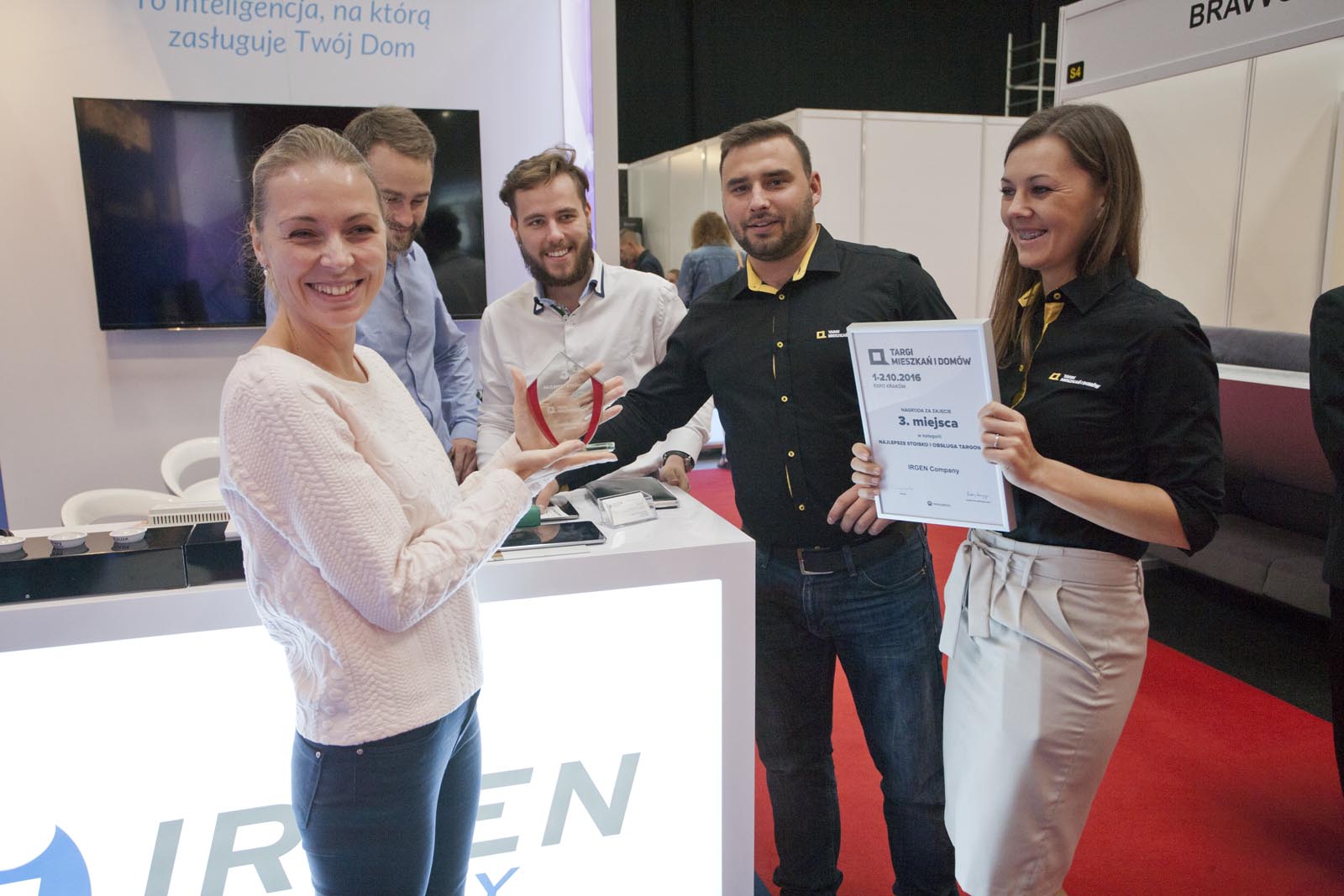 W dniach 1-2 października 2016r. nasza firma brała udział Targach Mieszkań i Domów w Krakowie. Nasze stoisko cieszyło się bardzo dużym zainteresowaniem. Tym razem skupiliśmy się na zaprezentowaniu rozwiązań dla niewielkich mieszkań. Na stoisku można było zobaczyć ich działanie, dzięki stworzonym przez naszych inżynierów minisystemom, z których jeden obsługiwał również makietę mieszkania. W tych dniach przybliżyliśmy idee Inteligentnego Domu wielu osobom wyjaśniając przy tym wiele zagadnień związanych z jego funkcjonowaniem. Organizatorzy docenili naszą ciężką pracę i profesjonalizm, czego wyraz dali przyznając nam 3 miejsce w konkursie na najlepsze stoisko i obsługę, sprawiając nam tym ogromną przyjemność. Następna okazja do spotkania się z nami na targach będzie w lutym, a mu już pracujemy nad kolejnymi ciekawostkami ze świata Smart House, które będziemy chcieli Państwu zaprezentować.